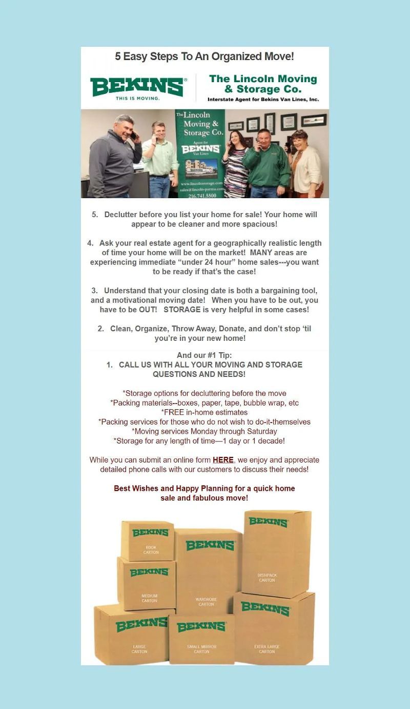 Planning a move can feel overwhelming—but it doesn’t have to be. At The Lincoln Moving & Storage Co - Interstate Agent for Bekins Van Lines, we’ve gathered our most helpful resources in one place to make your relocation as stress-free as possible. From packing guides and checklists to storage solutions, this page is designed to support you every step of the way. Whether you're moving across town or across the country, you'll find the insights and tools you need right here. If you have any questions, don't hesitate to